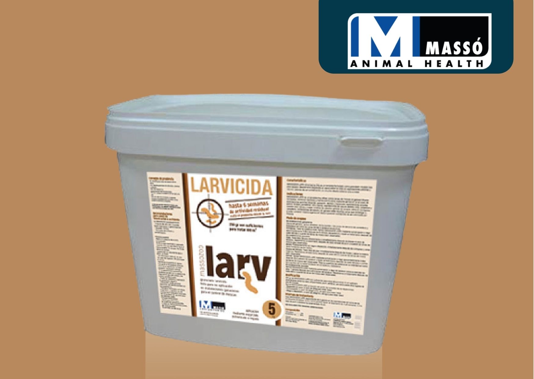 MASSOZOO LARV es insecticida larvicida granulado listo para su uso, que está especialmente formulado para eliminar y controlar las larvas de las diferentes especies de moscas, así como de otros insectos que se desarrollan en el estiércol, purín y otros desechos en descomposición de las explotaciones ganaderas.